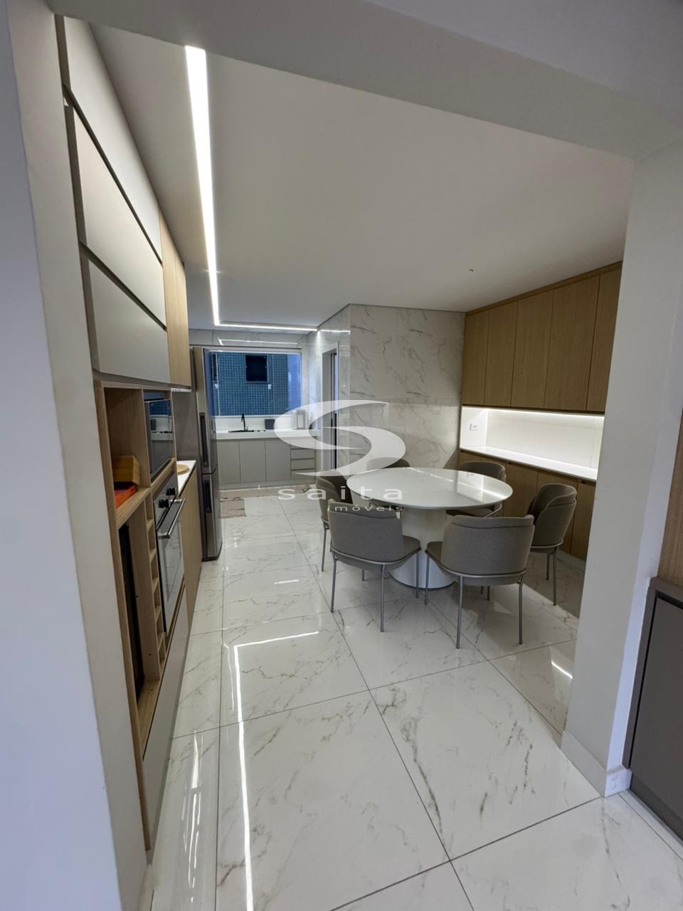 Apartamento com sala, 3 quartos sendo 1 suíte com closet, 1 banheiro social, cozinha, área de serviço, 2 vagas de garagem e prédio com elevador.